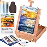- Maletin completo para pinturas: Set de pintura contiene todos los materiales necesarios para pintar, una caballete mesa portátil con paneles de lienzos 24x30cm, 10 pinceles de diferentes tamaños, 24...